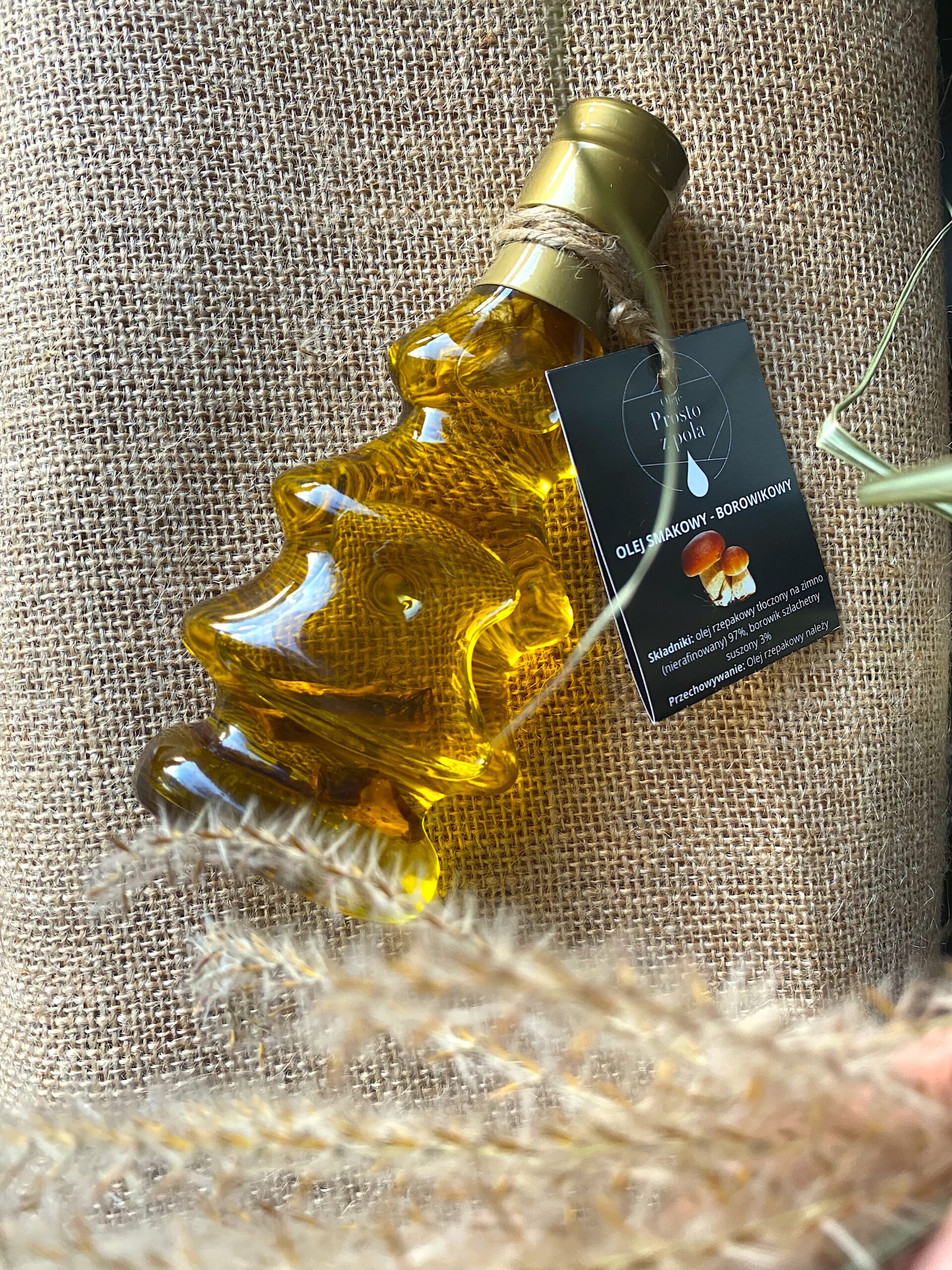 Składniki: olej rzepakowy tłoczony na zimno (nierafinowany) 97%, borowik szlachetny suszony 3%