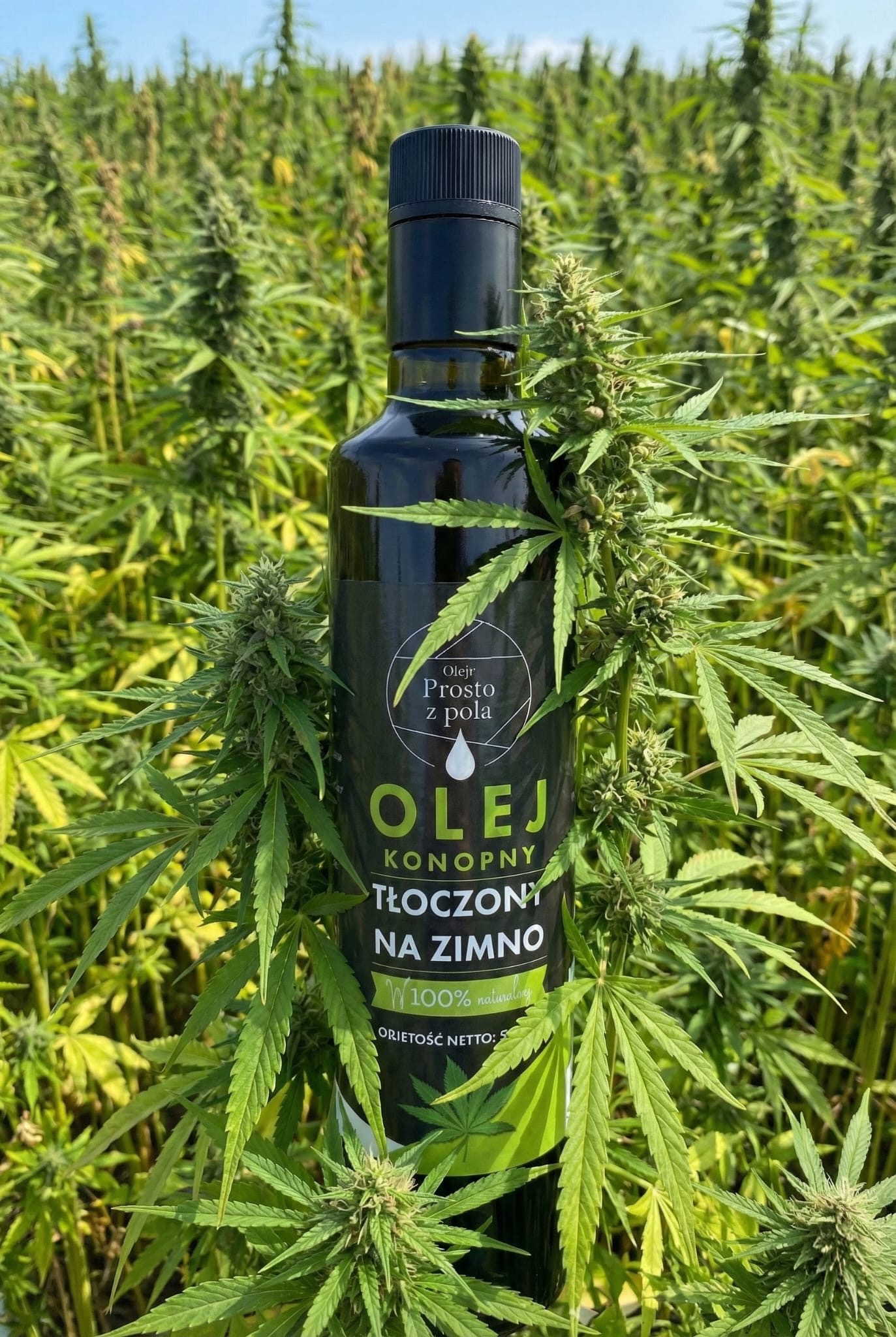 Olej konopny powstaje z nasion konopi siewnej rosnącej w Polsce, w naszym gospodarstwie.  Konopia siewna (Cannabis sativa L. var. sativa) z nazwy i budowy przypomina słynną konopię indyjską – marihuanę (Cannabis sativa L. var. indica). W przeciwieństwie do marihuany nie posiada ona jednak właściwości narkotycznych, ponieważ nie zawiera THC (tetrahydrokannabinol), czyli substancji o działaniu psychoaktywnym.