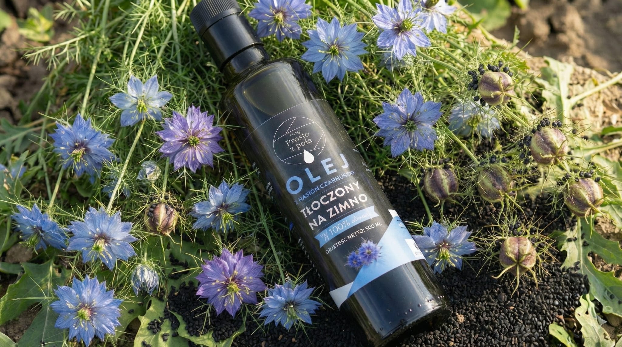 Olej z czarnuszki to w 100% naturalny produkt, tłoczony na zimno ze starannie wyselekcjonowanych nasion zielonej czarnuszki siewnej. Nasze oleje z czarnuszki zawsze są tłoczone na świeżo w momencie złożenia zamówienia przez Klienta, bez dodatku konserwantów czy chemicznych dodatków. Są nieoczyszczone i nierafinowane, ponieważ zależy nam, aby zachowały wszystkie cenne składniki znajdujące się w nasionach czarnuszki i wyróżniały się doskonałymi właściwościami zdrowotnymi.