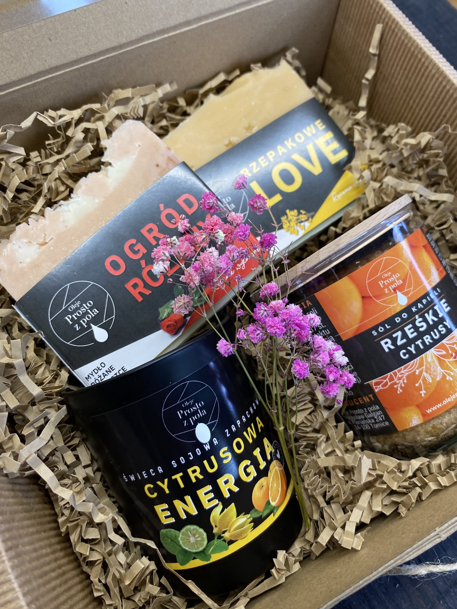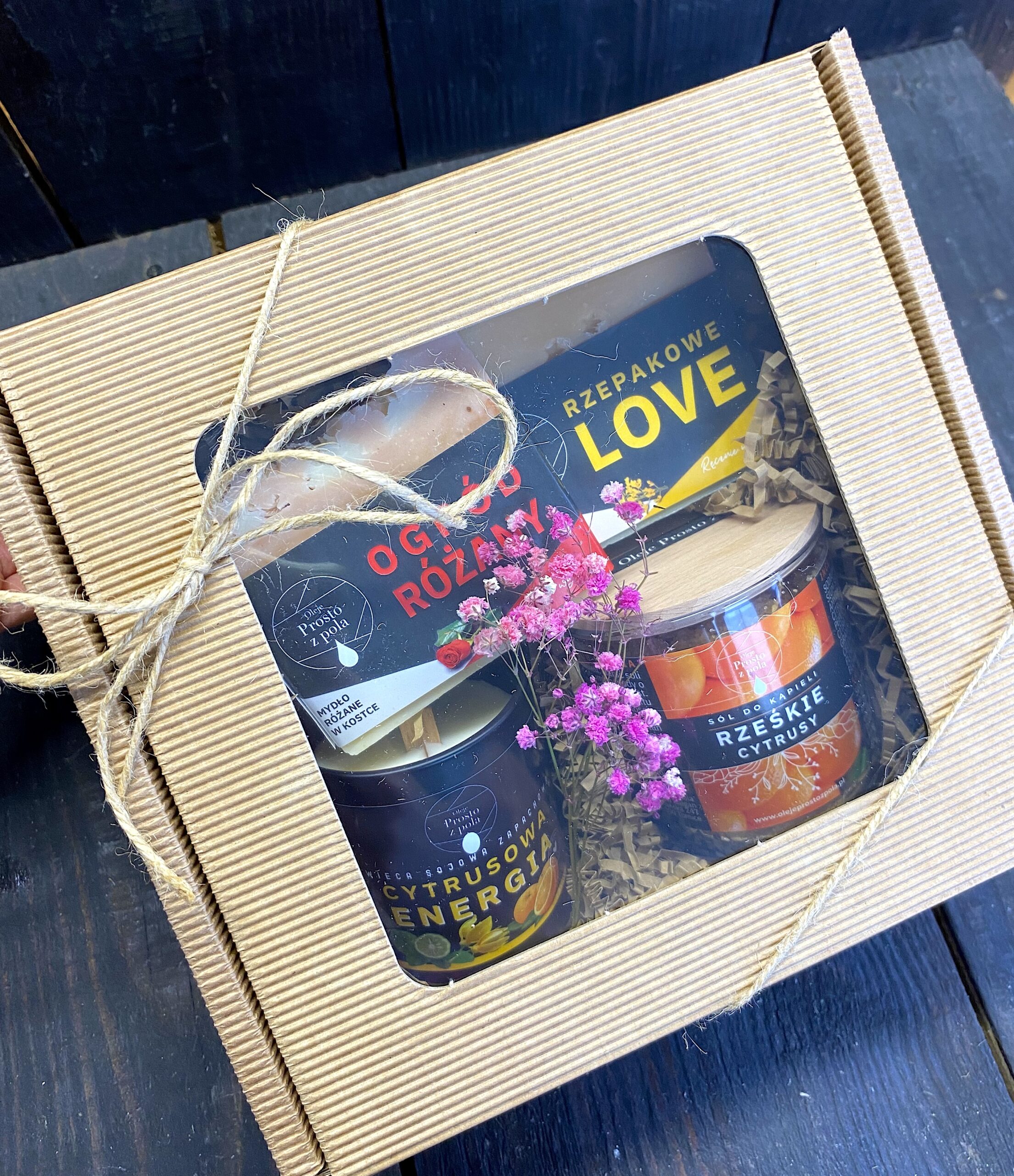 Jeżeli chcesz skomponować inny zestaw niż te które znajdują się w naszym sklepie –wybierz produkty które Cię interesują i dodaj do koszyka opcję: „ZAPAKUJ NA PREZENT” lub napisz na sklep@olejeprostozpola.pl